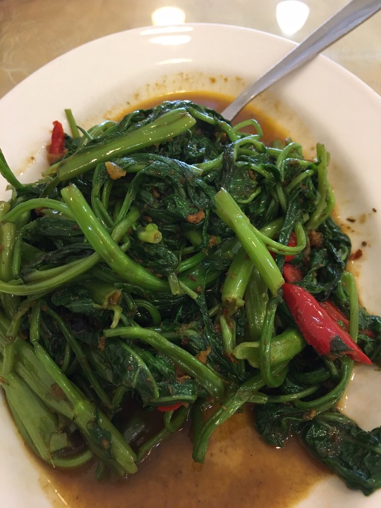 Asparagus stir-fried with belacan (shrimp paste), adding a rich, umami flavor to the vegetables